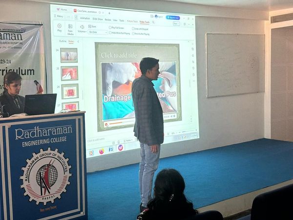 Title : राधारमण आयुर्वेद चिकित्सा महाविद्यालय रिसर्च अस्पताल, भोपाल के ट्रांजिशनल करिकुलम कार्यक्रम के व्याख्यानमाला में आज डॉक्टर नितिन तिवारी जी ने छात्रों को आयुर्वेद के विषय पर अपने विचार व्यक्त किएDetails : राधारमण आयुर्वेद चिकित्सा महाविद्यालय रिसर्च अस्पताल, भोपाल के ट्रांजिशनल करिकुलम कार्यक्रम के व्याख्यानमाला में आज डॉक्टर नितिन तिवारी जी ने छात्रों को आयुर्वेद के विषय पर अपने विचार व्यक्त किए उन्होंने बताया कि कैसे हम एक सफल व्यवसाई चिकित्सक और वेलनेस कोच बन सकते है । Dr अंकित नेमा जी ने अपना केस प्रेजेंटेशन किया जिसमे छात्रों को पाइल्स फिशर फिस्टुला के बारे में विस्तृत जानकारी देकर लाभान्वित किया ।.