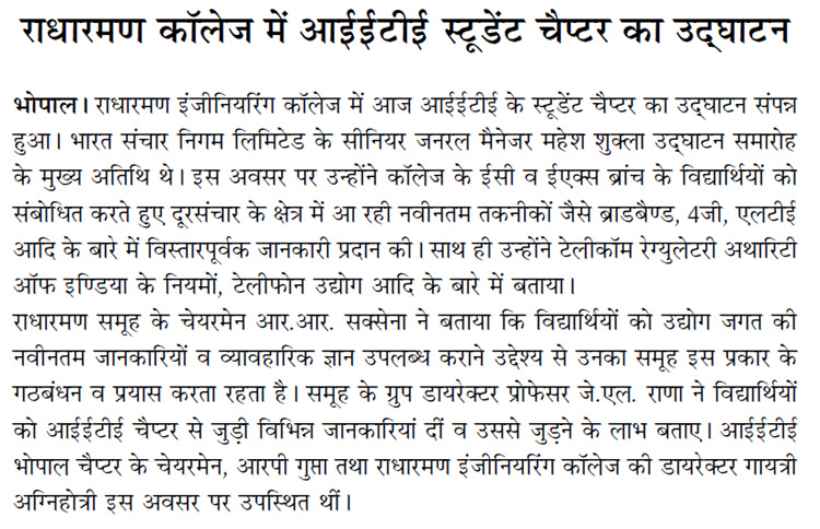 Details : IETE STUDENT CHAPTER inaugurated at RADHARAMAN ENGINERRING COLLEGE.