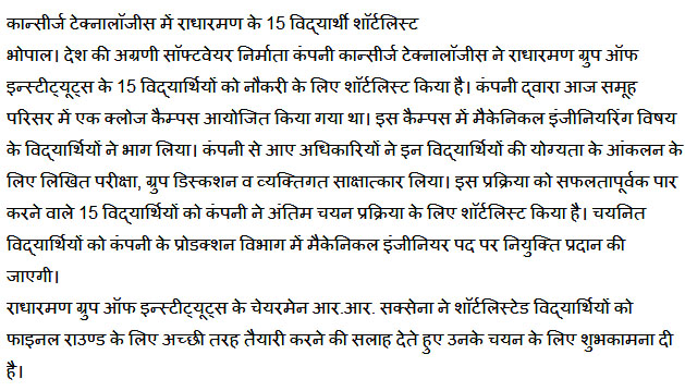 Title : Radharaman Students Selected in CONCIERGE TECHNOLOGIES