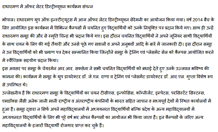 Details : Offer Letter Distribution Programe at Radharaman Group of Institutes,bhopal