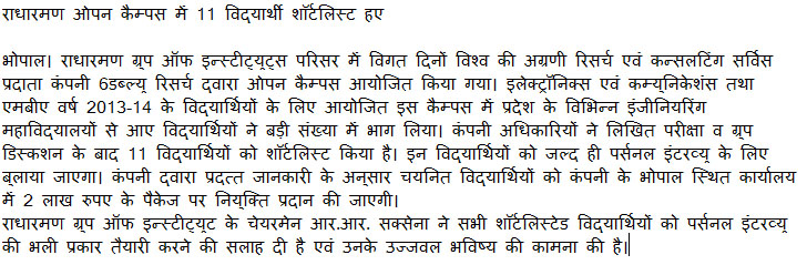 11 STUDENTS SHORTLISTED IN 6WRESEARCH - 21-05-2014