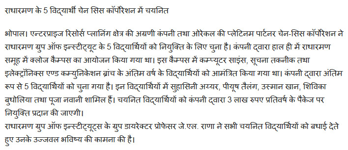 RADHARAMANS 5 STUDENTS SELECTED IN CHAIN SYS CORP. - 04-12-2014 ![]() RADHARAMANS 5 STUDENTS SELECTED IN CHAIN SYS CORP. - 04-12-2014 ![]() RADHARAMANS 5 STUDENTS SELECTED IN CHAIN SYS CORP. - 04-12-2014 ![]() RADHARAMANS 5 STUDENTS SELECTED IN CHAIN SYS CORP. - 04-12-2014 ![]() RADHARAMANS 5 STUDENTS SELECTED IN CHAIN SYS CORP. - 04-12-2014 ![]() RADHARAMANS 5 STUDENTS SELECTED IN CHAIN SYS CORP. - 04-12-2014 ![]() |