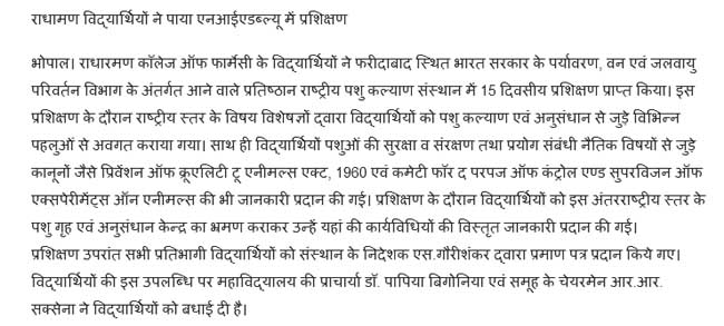 STUDENTS OF RADHARAMAN GET 15B DAYS TRAINING AT NIAW - 05-03-2015