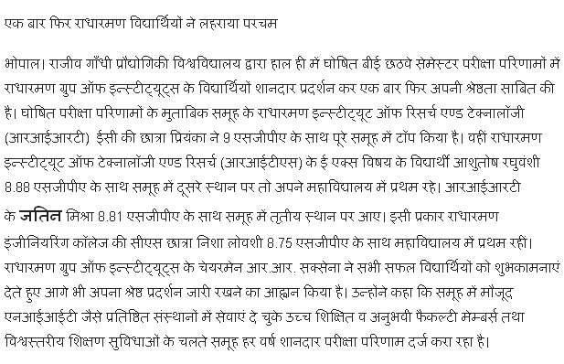 Title : Excellent Result in BE 6th Semester Examination by Radharaman StudentsDetails : Excellent Result in BE 6th Semester Examination by Radharaman Students.